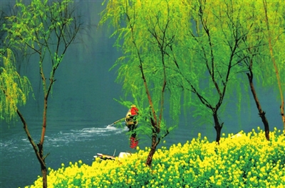 田野里,油菜花一大片一大片,金色的波浪在春风里荡漾着,漫过田,爬上坡。野草儿青,麦苗儿绿,任细雨轻抚,叶面上泛着一层水光。农人开着机器,在田地里一圈圈地耕耘,泥土的清香随风飘荡。小媳妇、大婶子挎着篮子走过来,割一刀鲜嫩的韭菜,挖一篮水灵的荠菜,品尝春天的味道……