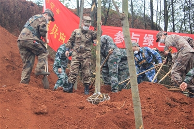 3月12日,赤壁市人武部在做好疫情防控的同时,组织民兵到赤壁镇青山村,开展以“参与绿色行动,保护美丽家园”为主题的义务植树活动。