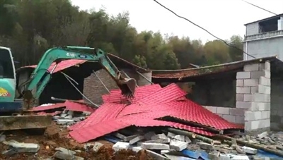 本报讯 (记者葛利利 通讯员陈曙 许松明)“拆……”3月22日,随着咸安区城管局相关负责人一声令下,官埠桥镇河背村村民董某的违建房随即被拆除。