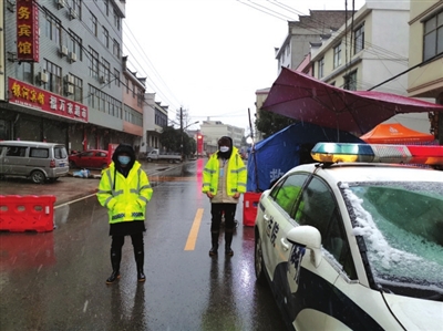 2月15日气温骤降15℃,但在106国道上,在驻点村,在罗汉湾小区防控卡点,依然看到干警们坚守的身影。