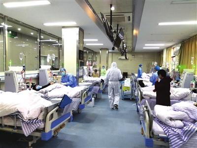 与此同时,为了更快的开展疫情防控和患者救治工作,在院领导的大力支持下, 他不眠不休快速组建精干的救治团队,带领科室医护人员整理、改造血透中心,仅用两天 时间,便为患者的到来做好了一切准备。