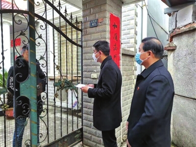 “你好!请配合测量一下体温,顺便登记一下你家是否有返乡人员。”1月28日,咸安区法院防控小组干警在长安社区挨家挨户进行走访调查,统计该社区居民家中返乡人员的情况,并叮嘱返乡人员在家进行隔离观察时,如若出现发热等疑似情况一定要及时上报。同日,该院院长张忠波带领防控小组的几名干警来到桂花镇柏墩村和鸣水泉村,张贴《致全区人民的一封信》,开展疫情防控和宣传引导工作 。