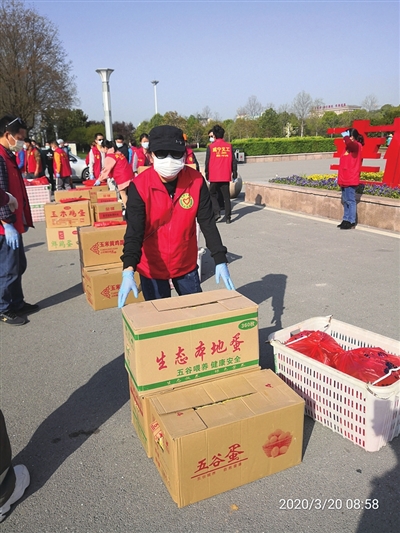 胡慧有一个并不广为人知的身份——咸宁市义工协会的资深会员。多年来,她一直在咸宁市义工协会默默付出,为需要帮助的人民群众无私奉献。新冠肺炎感染疫情爆发以来,作为义工协会资深成员的胡慧同志格外忙碌。2月11日,胡慧完成小区值守任务后,匆匆忙忙地扒拉了几口方便面,就步行50分钟赶到杨下义工协会参加志愿者活动。在指定的抗疫物资仓库,胡慧和其他志愿者们一起卸运由壹基金配捐给咸宁各地医院的消毒水、医用手机、对讲机等防疫物资。这边刚结束,胡慧来不及有片刻休息,又迅速赶往市防控储备中心仓库,参加25吨消毒水和2000袋大米的卸运工作。胡慧和其他志愿者一起手提肩扛,衣服湿了又干、干了又湿,直至晚上七点才完成所有任务。胡慧带着腰痛的旧疾、拖着沉重的身躯疲惫不堪地再次步行回到家中,没有任何食欲的她简单吃了点方便面就卧床而睡。有人说:“既然不堪重负,何必那么辛苦?”胡慧回答:“众人拾柴火焰高,只有大家齐心协力、共同付出,我们才能打赢疫情防控阻击战,个人忙一点、累一点不算啥。”