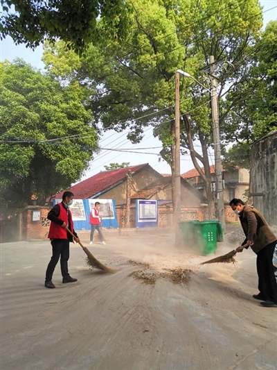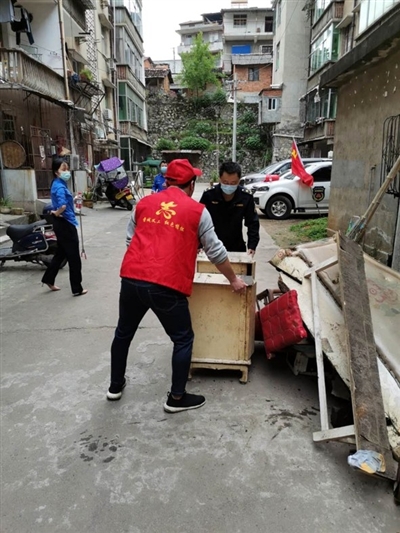 在西大街社区第3网格、碧桂园社区第4网格,城管党员志愿者深入居民区、楼栋,扫除地面尘土、落叶,清理一个个垃圾死角,用铲子铲除墙面上的牛皮癣广告,合力搬走旧家具等废弃物。