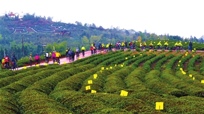 万亩茶园自行车慢行公园,是湖北“最生态自行车慢行公园”。骑行公路采用彩色沥青混凝土铺设,宽3.5米,长2400米,纵横交错于万亩茶园当中,扮靓了整个园区。
