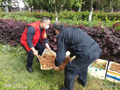 4月24日下午,咸安区温泉街道办事处希望桥社区工作人员、大楚城小区包保单位市实验小学党员干部、小区志愿者及大楚城物业客服中心工作人员,在大楚城小区开展“万人洁城”活动,对毁绿种菜进行清理,对绿化带内白色垃圾、落叶进行地毯式清扫。 记者 程统 通讯员 汪碧容