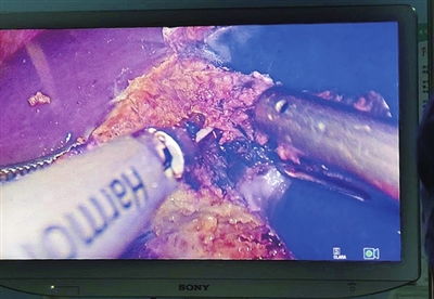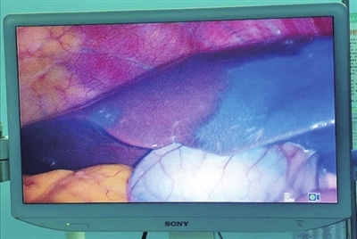 原来这类手术釆用传统开刀,切口长达20多公分,不仅创伤大、出血多,还需要输血;而现在釆用腹腔镜微创+荧光染色,开4至5个小孔就可以完整切除肝脏病变,创伤小、出血少。荧光染色技术相当于把病肝贴上标签,在切面两边形成“一半海水,一半火焰”的奇特景象,差别明显。既能完全完整地切除病肝,又能准确地留下正常肝脏,还能发现术前不能发现的隐匿病变,真正做到最大限度切除病灶同时最大限度保留正常肝组织,从而达到“精准”肝切除。
