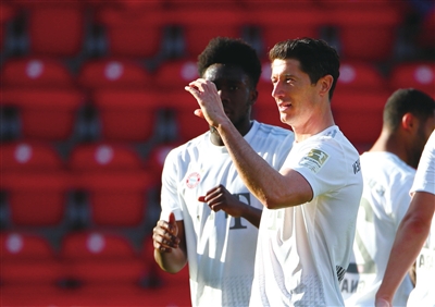 本报综合消息 德甲联赛第26轮昨晨上演焦点战,领头羊拜仁慕尼黑客场2比0击败柏林联合,拿下德甲5连胜后继续以4分优势领跑积分榜。两个进球都是依靠定位球,莱万多夫斯基点球命中,帕瓦尔接到角球头槌破门。值得一提的是,首轮比赛中,德国首都球队柏林赫塔在庆祝进球时曾违反了保持社交距离规定,他们像足球停摆以前那样集体庆祝,好在德国职业足球联盟并不会对此进行处罚。