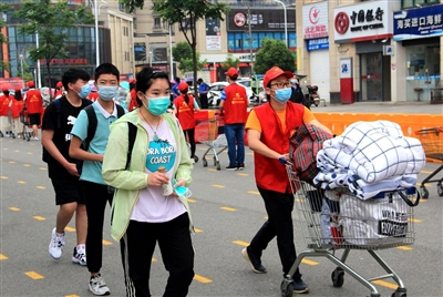 记者在校门口看到,该校30余名青年教师穿上“红马甲”,变身志愿者,帮学生搬运行李,成为校园内外靓丽的风景线。“还是学校的学习氛围更好。”初一年级数学教师许小林是黄冈人,为了能有更好的状态开展网络教学,她4月中旬就返回学校。作为教师志愿者,她当天来回多趟帮学生运送行李,累并快乐着。“希望低年级的学生们也能尽快重返美丽的校园。”看着初三学生充满活力的身影,许小林期待地说。