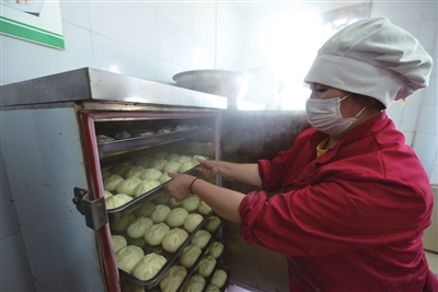 5月19日上午9点50分,苗苗小学的厨房里,飘出一阵阵包子的香味。“出锅喽……”随着一声吆喝声,当日第一锅100个香气喷喷的粉条肉包出炉。