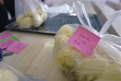 出锅之后,就有几个人将这些包子装袋打包。“这是新城一个客户预定的10个,10点之前送到。”“这是老城一个家长预定的20个”……厨房隔壁的餐厅,就是临时的打包间。