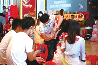 签到、领取号码牌、爱心贴、亲友团……当日下午2时30分,菁英相亲大会在游戏互动环节中正式启动。自我展示、踩气球、抢凳子、你来比划我来猜、真心话大冒险等一个个轻松又活跃的节目,让在场男女嘉宾们情意渐浓。