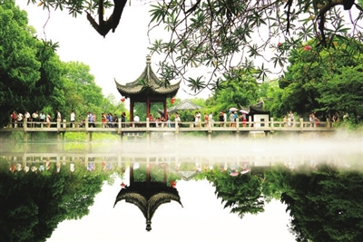 四季轮回,山色变幻,山的魅力不会因四季的寒热更替而更改。潭水倒影,石阶青苔,虫吟鸟唱,蝶舞花飞,在世事变迁中又何曾懈怠?它的姿影叠合在人们眼瞳,它的情态蜿蜒在人们心头,它以它的景观,它以它的鲜活,范例般,洞开了一座城市妖娆的风采。