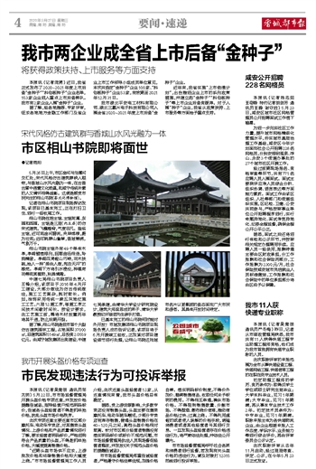 已基本完工的相山书院何时能对外开放?市城发集团相山书院项目现场负责人皮杰告诉记者,该项目将于6月开展竣工验收,正加紧对项目建设细节进行处理,让相山书院这张城市名片以更靓丽的姿态面向广大市民和游客。其具体开放时间待定。