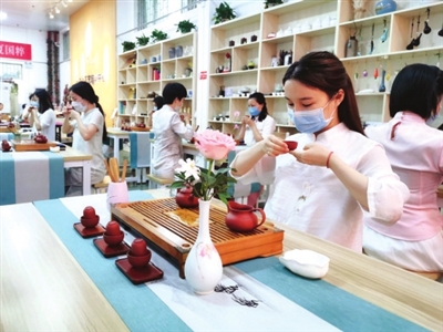 据悉,今年4月30日开展免费培训以来,该校共开了两期茶艺班。通过线上教学和线下实操相结合的方式,共免费培训学员90人左右,月底再计划开设两期培训班。