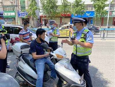 “你好,驾驶摩托车需要佩戴安全头盔……”“请出示您的驾驶证”……1日上午9时许,市公安局交警支队城区大队和咸安公安分局交警大队在城区双鹤桥、中心花坛、南山等多个路口进行执法检查。