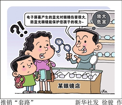 新华网消息 针对中小学生等未成年人观看电脑、手机等各类电子屏幕的时间增多,视力受损风险明显增大的“商机”,不少商家千方百计“套路”家长为孩子购买价格更高的“护眼神器”防蓝光眼镜。