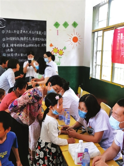当日上午10点,市中心医院团委一行20余人走进了西垅村留守儿童小学。学校教室临时搭建成义诊室,医院儿科二支部书记、儿内科主任赵红玲及其专家团队被西垅村和附近村落赶来的家长围满了,专家们认真的倾听着家长对孩子症状的描述,不管是儿童呼吸、内分泌、肾病还是喂养和生长发育等方面遇到的问题,都有相应的专家来耐心的解答并给出满意的答复;除了问诊,儿内科的护士长还贴心的为前来就诊的孩子准备了小玩具,并向村医务室捐赠了一批金叶败毒颗粒和鱼腥草口服液等常用药品。