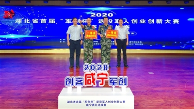 本报讯(记者陈婧 通讯员潘健君)“啊,当兵光荣,当兵为了保卫祖国,当兵就是为了老百姓…”昨日上午9时,湖北省首届“军创杯”退役军人创业创新大赛咸宁赛区选拔赛决赛在激昂的军歌声中开启。15位身穿绿色迷彩服的退役军人迈着矫健的步伐依次走向舞台,他们走军姿、敬军礼,而后分别展示自己的创业项目。