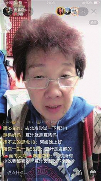 “朋友们,今儿咱们还是喝豆汁儿,吃焦圈儿,配小咸菜。”直播间熟悉的老北京口音一响,老铁们就知道“老北京大妈”又在线营业了。都说新一代年轻人已经开始养生,但咱这大妈可是炸鸡、汉堡、咖啡等美食来者不拒。早起遛弯儿直播,晚上按点儿上线,聊美食、生活和过去,在快手直播已成了大妈的日常。