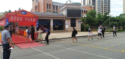 外校:三个通道错峰上下学 “学生开学很兴奋,见了面有说不完的话,老师就是要时刻提醒学生保持社交距离。”咸宁实验外国语学校办公室主任余琼介绍,早上6点半就已经有学生到校,老师们更是早早的侯在校门口,30余米长的入学通道,间隔三五米就有一名值周教师,提醒学生排队、保持距离,是老师们说的最多的话。记者在该校看到,校门口分为三个通道,每三个班一个固定通道。实行错峰上下学,学生上课期间学校实行封闭管理。早上,从高年级到低年级依次从7点到8点,每个年级有20分钟入校时间。学生入校要在校门口接受红外线测体温,进入教室,还要接受晨午检。下午从14点到14点30分三个年级依次入校。
