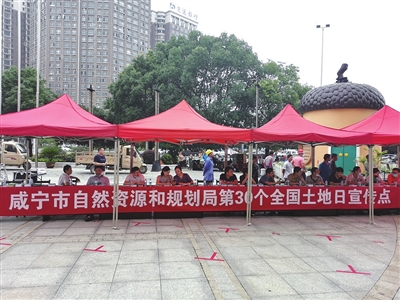 本报讯 6月24日上午,咸宁市自然资源和规划局在同惠广场举行“第30个全国土地日”宣传活动,今年土地日的宣传主题为“节约集约用地 严守耕地红线”。