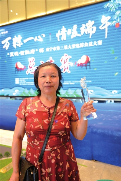 这次获得“十佳香城粽王”,让张细英有些激动。她以前也参加过包粽比赛,但没拿过奖。“没想到这次能拿空调扇,明年还要来参赛!”张细英兴奋地说,今年获得了奖品还献了爱心,感觉非常值!