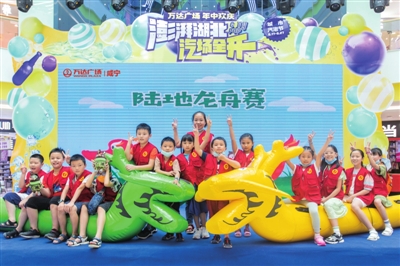 不湿身不下水的龙舟,你见过吗?6月26日,来自市实验小学、市外国语小学、市第二小学及咸宁浮山学校的香报小记者及家长齐聚万达广场咸宁店,举行了一场别开生面的旱地龙舟赛。当日,在报社小记者部老师的组织带领下,小记者们还即时开办了“跳蚤市场”,整个活动现场妙趣横生,大家在寓教于乐的过程中共同感受中华民族的传统文化魅力,欢度端午佳节。