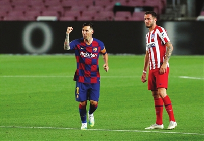 本报综合消息 北京时间昨晨,西甲联赛第33轮一场焦点战在诺坎普球场上演,巴塞罗那主场2比2战平马德里竞技,多赛一场还落后皇马1分。梅西利用点球打进职业生涯第700个进球。萨乌尔两次依靠点球帮助马竞扳平比分。