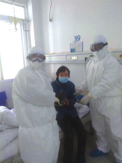 为了安抚和稳定患者情绪,丁治强和医护团队站在患者床边,通过厚厚的防护服和已被热气模糊的防护面罩不断的和病人沟通,丁治强诚挚地说:“请一定相信我,相信我们的团队,你这个病可以治好,你的家人还在等着你早点好起来,请一定要配合!我们一定会给你最好的医治!”