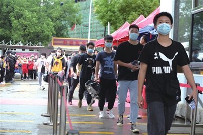 7日上午,考生有序进入考点。 (记者 张仰强)