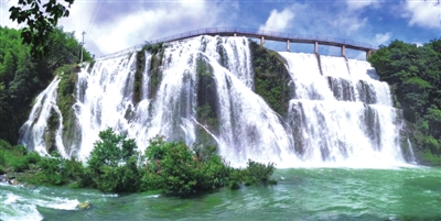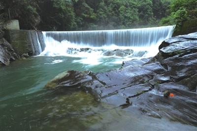 这是进入了奇幻的瀑布部落。时值端午小长假,三界谷里无数的车辆,无数的人。慢着性子赏景徒步溯溪的,鸭群一样尖叫着飘流的,惊叹于瀑布壮美而频频拍摄的,直接扑入溪中打水逗乐的,谁也挡不住山野的魅力。厦铺河有溪涧数十条,如鹅公颈大瀑布、芦坪大瀑布、“天使之眼”、小坑溪、张河口、四都港、三眼潭溪、西隅鲁沟、黄金白沟、高塘溪、老林沟等多条峡谷溪涧,简直就是流泉飞瀑景观走廊!鹅公颈瀑布宽82米,落差36米,壮观之势堪比黄果树瀑布。一水西南而来,一个落差,扎向谷底,把安静的绿摔成了奔放的浪花,雪白的跳跃。谷底处白浪腾腾,吞雪喷雾。激流动荡之后,顺溪左拐向东,已然涛涛江河。右边的瀑布有三级跳,跌宕了三次,最后猛然插入谷底,潇洒干脆,完美天成。左边的瀑布一条条斜线与垂直线交织,纵横交错,与右边的瀑布组成宏大的画面。那吼哮的白练激情奔放,好似冲破了阻击,要畅意东流。瀑布帘幕的石崖上丛生着芭茅与小植物,成了一种衬托,动态的巨大洁白中泛着几块摇摆的绿。若良久审视满屏的瀑布,犹如雪崩一样。大坝上行走,人在瀑上;弯到谷底,仰望瀑布,头上是白云在飞,整块整块的云铺过山顶,而四周白色的雾粒在水压冲击下变成雨扑面而来,浑身透凉,清爽之极。