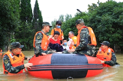 7月8日,赤壁城区出现大面积内涝。武警咸宁支队迅速派出17名官兵携带皮划艇和救生器材组成应急救援力量,赶往任务地点展开救援工作。经过武警官兵4个小时连续作战,20户75名受困群众全部安全转移。