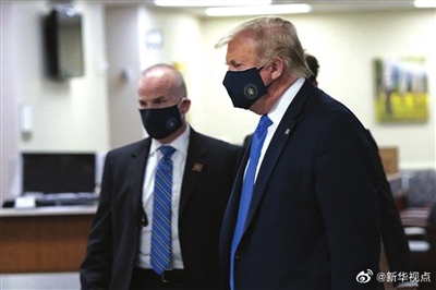 自今年3月新冠疫情在美国全面暴发以来,特朗普在公开场合一直拒绝戴口罩。据美国媒体报道,特朗普5月下旬视察密歇根州一家福特汽车制造厂时,尽管公司事先提醒白宫,工厂有戴口罩的规定,但特朗普只在视察开始时的活动中戴了口罩,且不让记者拍摄。他说:“我不想让媒体看到。”