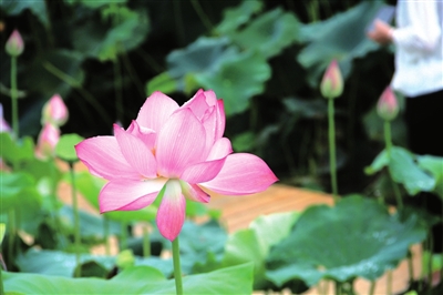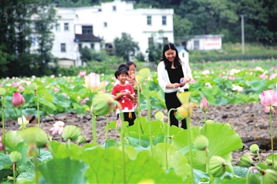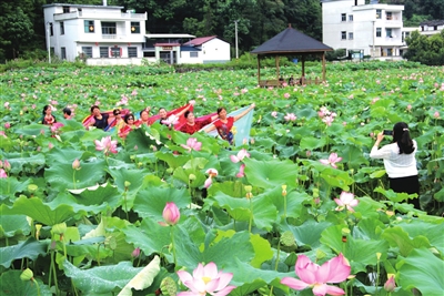 7月3日,通山县南林桥镇石门村太空莲观光园内,游客正在赏花、拍照。盛夏时节,石门村200亩“太空莲”进入盛花期,有的含苞待放,有的已尽情绽放,争相迎接四面八方的客人。