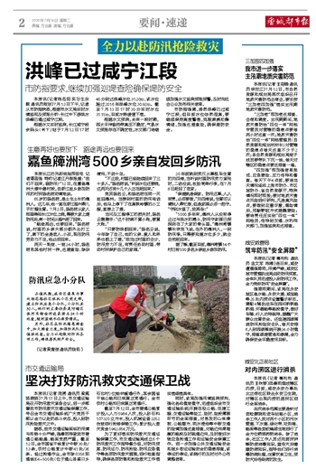 嘉鱼簰洲湾500乡亲自发回乡防汛
