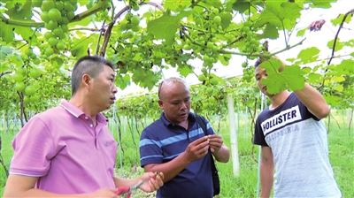 同样遭受损失的还有经济作物。在南林桥镇石门村的七里香四季果园中,部分葡萄已经成熟,田沟的水还未完全消退,县农业农村局专家正在棚内向合作社负责人夏学文指导生产自救。