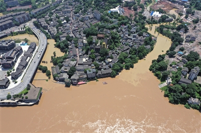 27日10时许,位于嘉陵江边的磁器口古镇水位达到184.07米,超出警戒水位3米多,临江地势最低的数十家商铺已被淹没。古镇管委会应急办主任赵家平说,管委会已启动应急响应,在洪水到来前安排临近区域的商户和居民提前撤离。