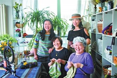 简洁的单色墙壁作背景,各色毛线团和几根木针当道具,几位主播端坐教粉丝织毛衣。没有卖力吆喝,只是唠唠家常,这家淡如水的小店却保持每场3万多的观看量。更特别的是,这些“主播”是一群平均年龄50岁左右的太太。