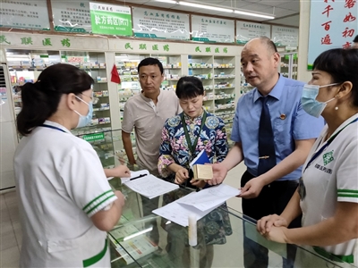 昨日,咸安区人民检察院副检察长张尚利带领该院第二检察部检察官,与咸安区市场监督管理局执法人员一起,对城区两家药店的经营资格、药品储存条件、采购药品票据凭证、药品摆放与贮存、处方药销售等情况进行了抽查。