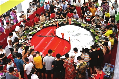 “从事火锅行业十几年了,这种巨型火锅宴还是第一次参加,感觉很新鲜,也能更好地推广火锅。”匡秋明说。