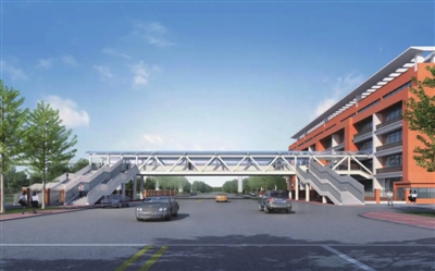 为缓解书台街的交通拥堵,保障行人安全,咸宁实验外校路段将建一座人行天桥,连接该校信息楼和清华城校区教学楼。该桥是我市首座钢结构人行天桥,预计今年9月份即可建造完成(图为设计效果图)。 (记者 熊大平 通讯员 余茹) 详见3版