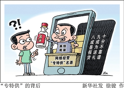 新华网消息 “一瓶2015年的专供名酒,115000元。”记者近期发现,多家网络平台上有卖家经营“专特供”名酒。早在2013年,国家多部门就对“利用互联网销售滥用‘特供’、‘专供’等标识商品”进行了集中清理整顿,并明确发文“严禁中央和国家机关使用‘特供’、‘专供’等标识”。