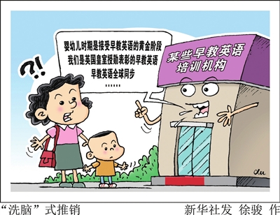 近两年,早教英语培训机构在各大城市遍地开花。“早教英语全球同步”“婴幼儿时期是接受早教英语的黄金阶段”……在很多城市的商圈和主路段,经常会遇到早教英语培训机构类似“洗脑”式的推销,并受到部分年轻父母的热捧。
