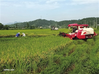 本报讯(记者 王奇峰 通讯员 杨清)8月19日,南林桥镇湄溪村,通山县乡林种植专业合作社的再生稻基地上,沉甸甸、金灿灿的稻穗在风中摇摆,收割机、运输车在稻田里来回穿梭,金色的田野一片繁忙景象。