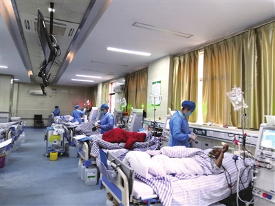 由于患者肾脏功能减退或丧失,无法将体内代谢产生的废物、水分排出体外,所以就必须靠血液透析来将尿中毒素、 水分排出体外,以减轻症状,提高生活质量。一般每周做血液透析2至3次,每次4至6小时。如能坚持合理透析,不少患者能过 较正常的生活,有的存活20年以上。