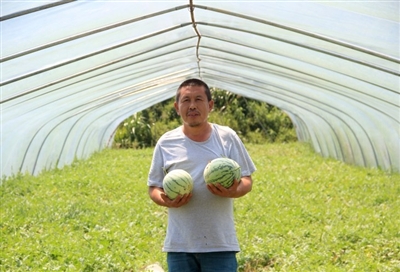 “和以前流动贩卖水果相比,种植西瓜虽然也很辛苦,但是人身心轻松些,只需要一门心思把瓜棚打理好。”刘四满说。
