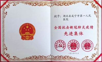 9月8日,对市第一人民医院人来说,是一个终身难忘的日子。当日上午10时,全国抗击新冠肺炎疫情表彰大会在北京人民大会堂隆重举行。大会对全国抗击新冠肺炎疫情先进个人、先进集体,全国优秀共产党员、全国先进基层党组织进行表彰。咸宁市第一人民医院作为全国抗击新冠肺炎疫情先进集体之一受到表彰,成为我市唯一获得全国抗疫表彰的医疗单位。