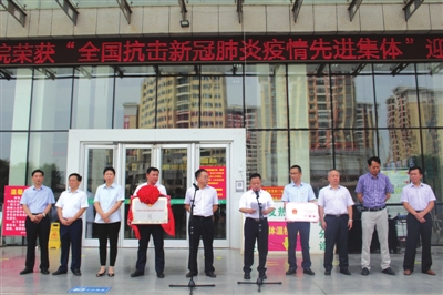 9月9日上午10时许,该院党委书记涂平代表医院迎牌归来。院长陈克俭在迎牌仪式上,从涂平手中接过这块沉甸甸的荣誉奖牌时激动地说:“这份荣誉是咸宁市第一人民医院历史上的最高荣誉,也是一次永不湮灭的精神鼓舞,是全院干部职工团结一心、舍生忘死、无私奉献,日日夜夜奋力拼搏的结果!”话音刚落,全场医务人员无不动容掌声雷动,全院齐心战役时的一幕幕场景仿若再次重现众人眼前……