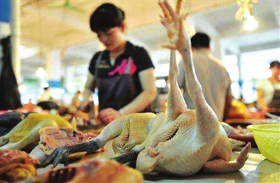 在北京市丰台区一家菜市场,卖鲜鸡肉的商家表示,今年鸡肉销量并不太好。“去年一天能上2000多元的货,今年最多的时候才上1000多元,没超过2000元过。”